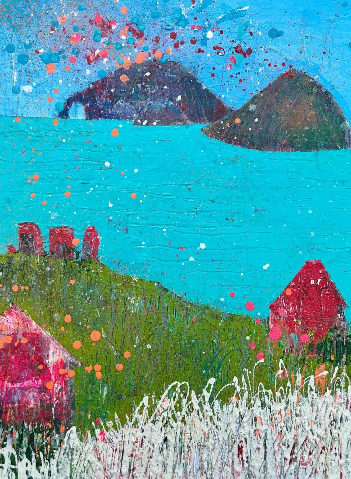 Sandra van Beurden-Hopkins is a UK-born mixed-media artist of UK and Irish heritage, working across painting, sculpture, and 3D media. Now based between The Hague and County Kerry, her practice explores colour, texture, and form through both traditional and experimental approaches. Trained in textile design and design management at UMIST, Manchester, she has continued her artistic development through extensive study and international workshops. Sandra’s work has been exhibited in The Hague and Ireland, including the Kenmare Art Festival 2025, where she was a finalist in the Poets Meet Painters competition. She is currently represented by Mill Cove Gallery, Kenmare.